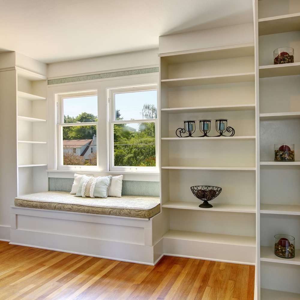 Expert fine carpentry adding beauty, detail, and value to bookcases, fireplace surrounds, & window seats.